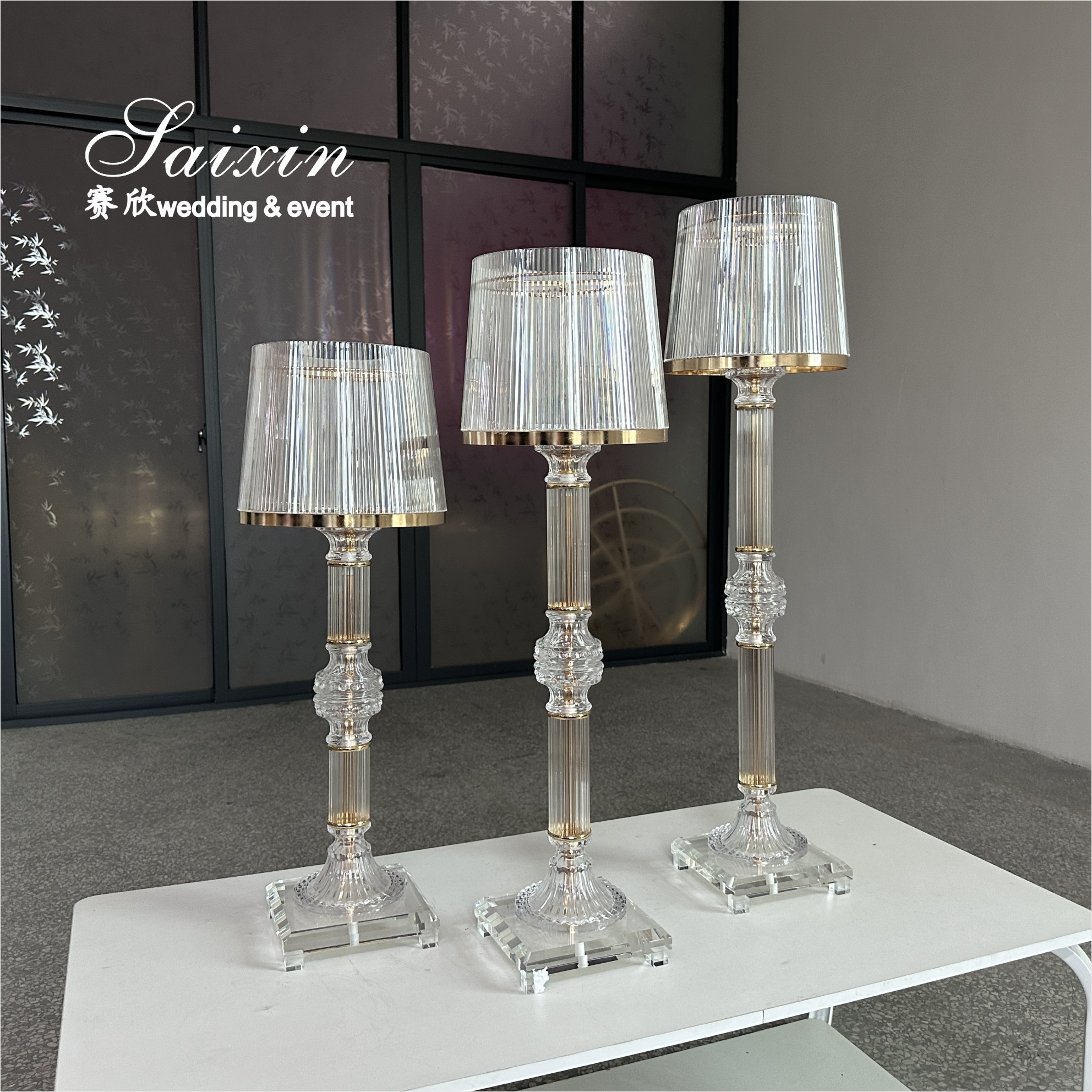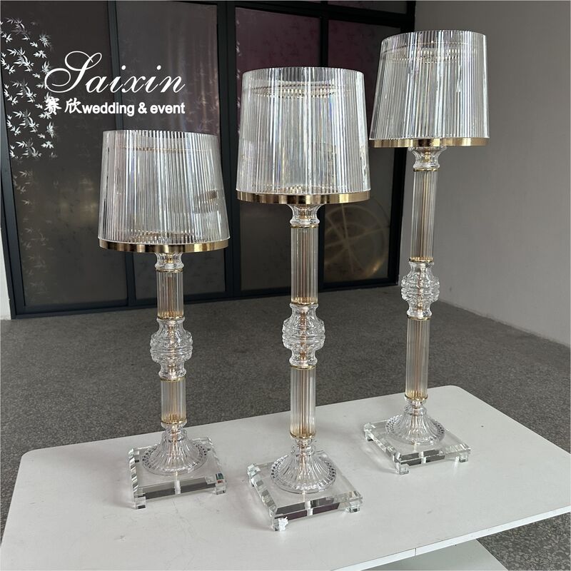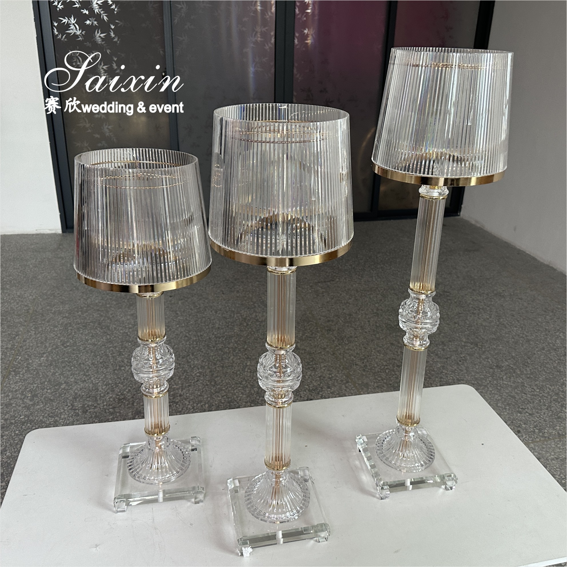 | Mettre en évidence: | gold crystal candle holders,clear glass wedding centerpiece stands,3 piece ring shade candle holders |